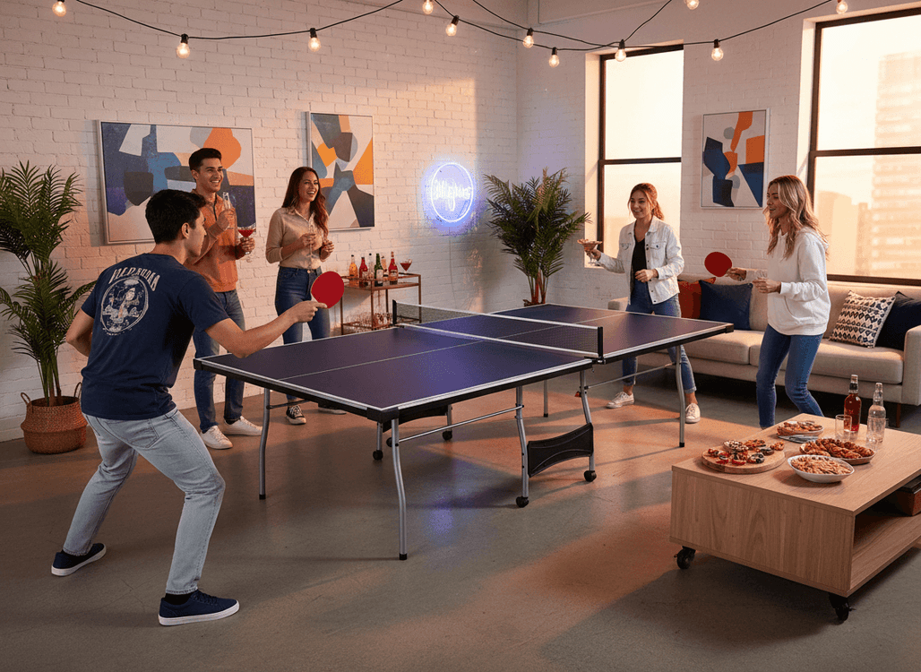 Each half of your ping pong table folds independently—store both upright against a wall, or fold one half up for solo playback practice—ready for the next match.